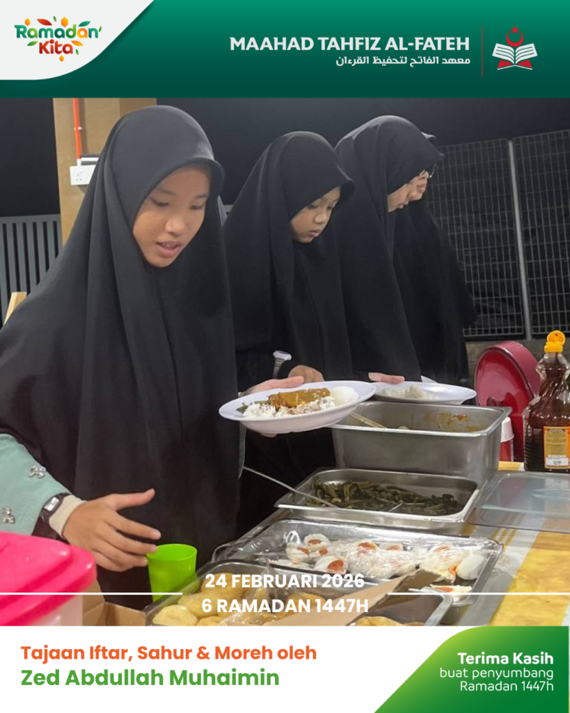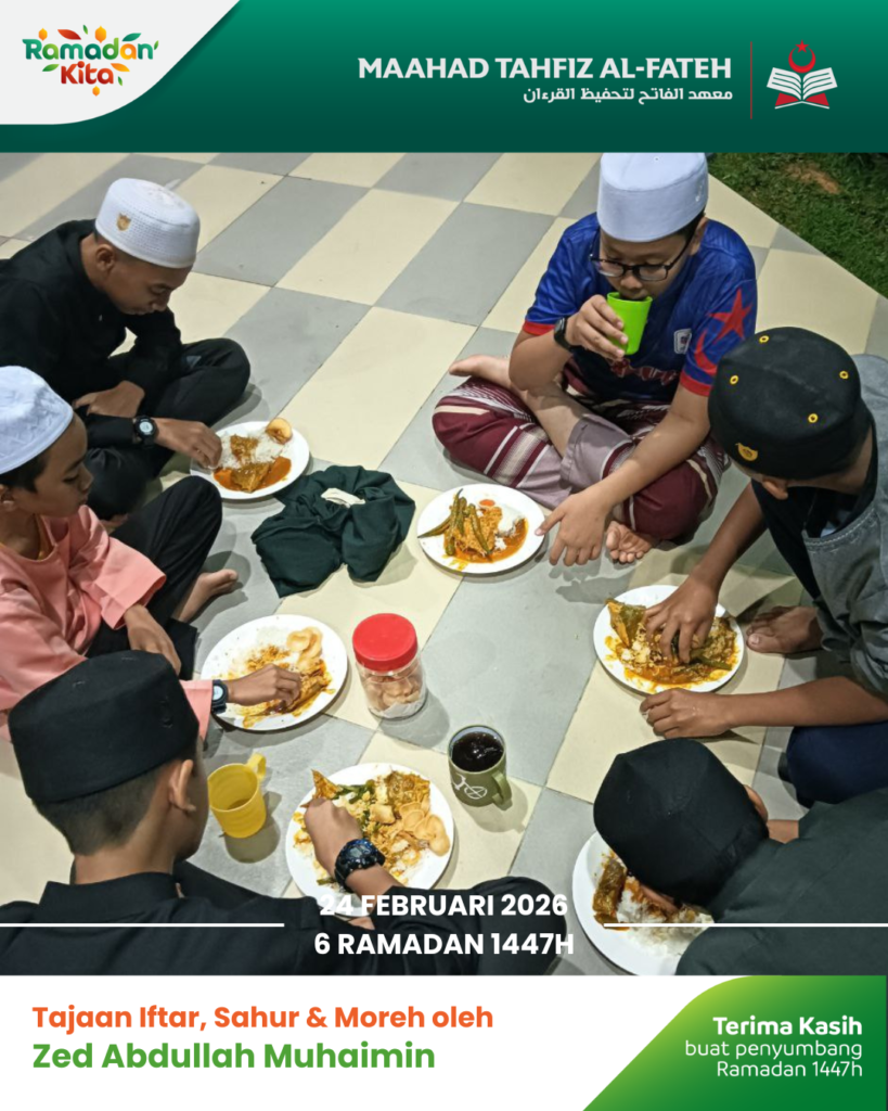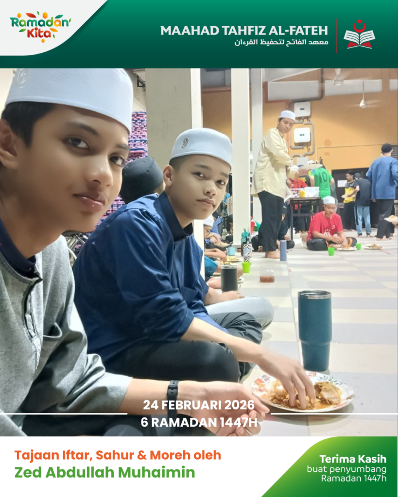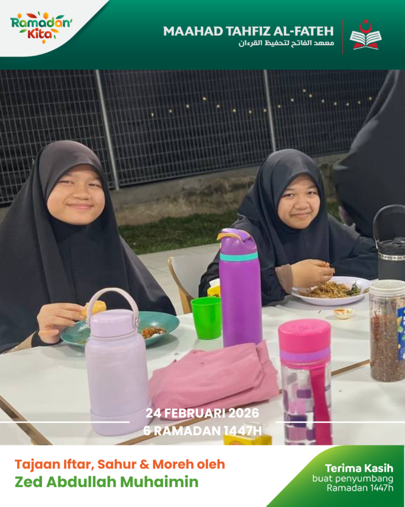 Para pelajar Maahad Tahfiz Al Fateh telah menikmati juadah berbuka puasa dalam suasana penuh kesyukuran. Sumbangan ini bukan sekadar hidangan, tetapi menjadi sumber kekuatan buat mereka dalam meneruskan hafazan Al-Quran.